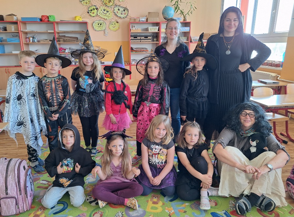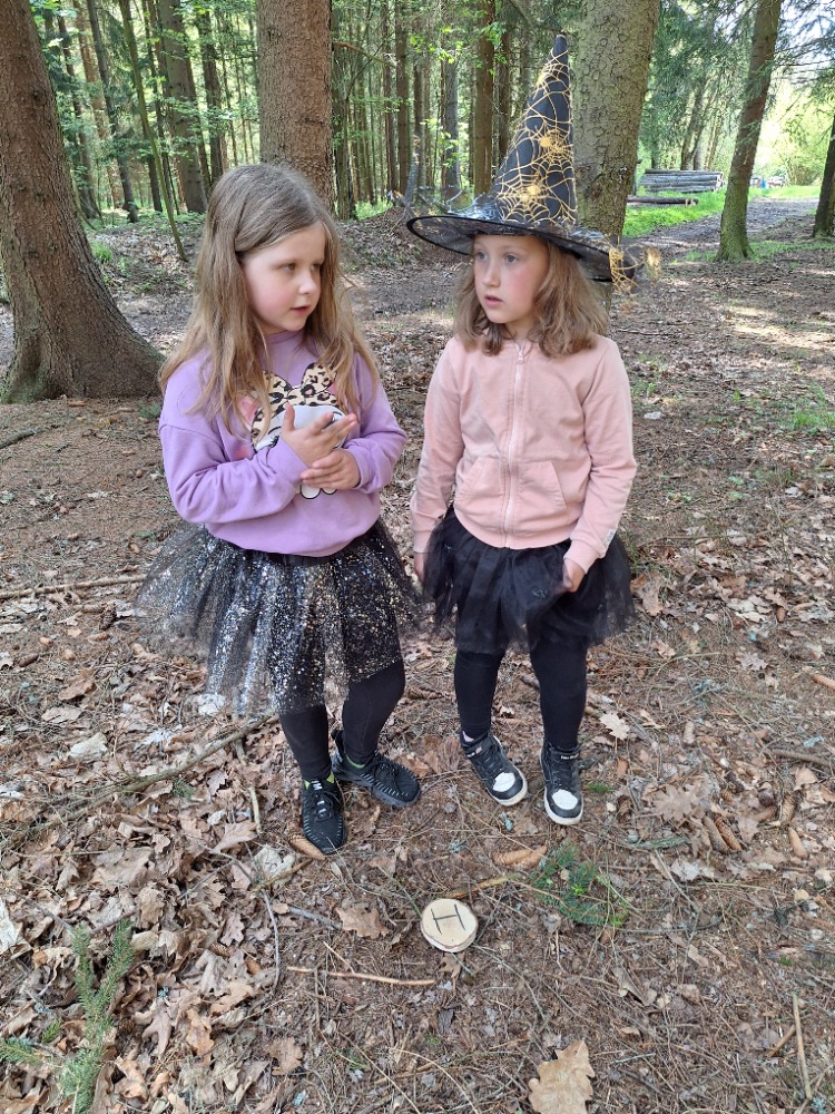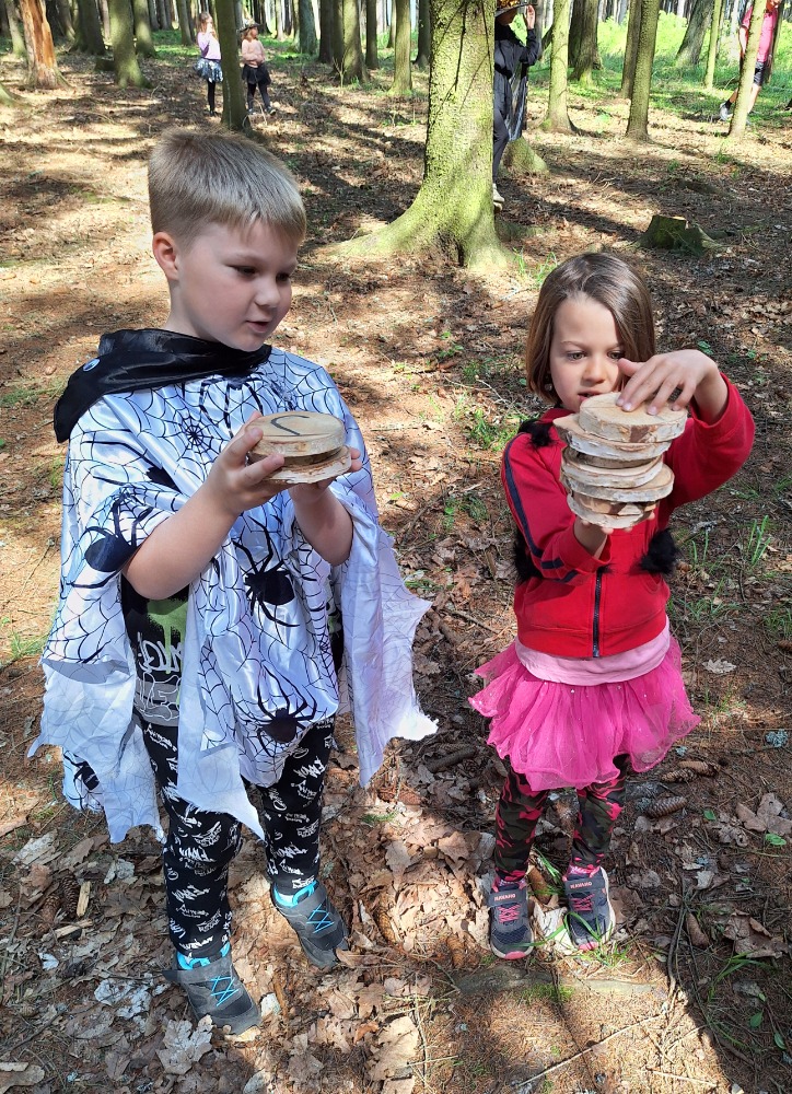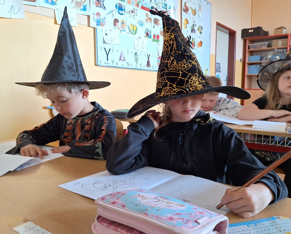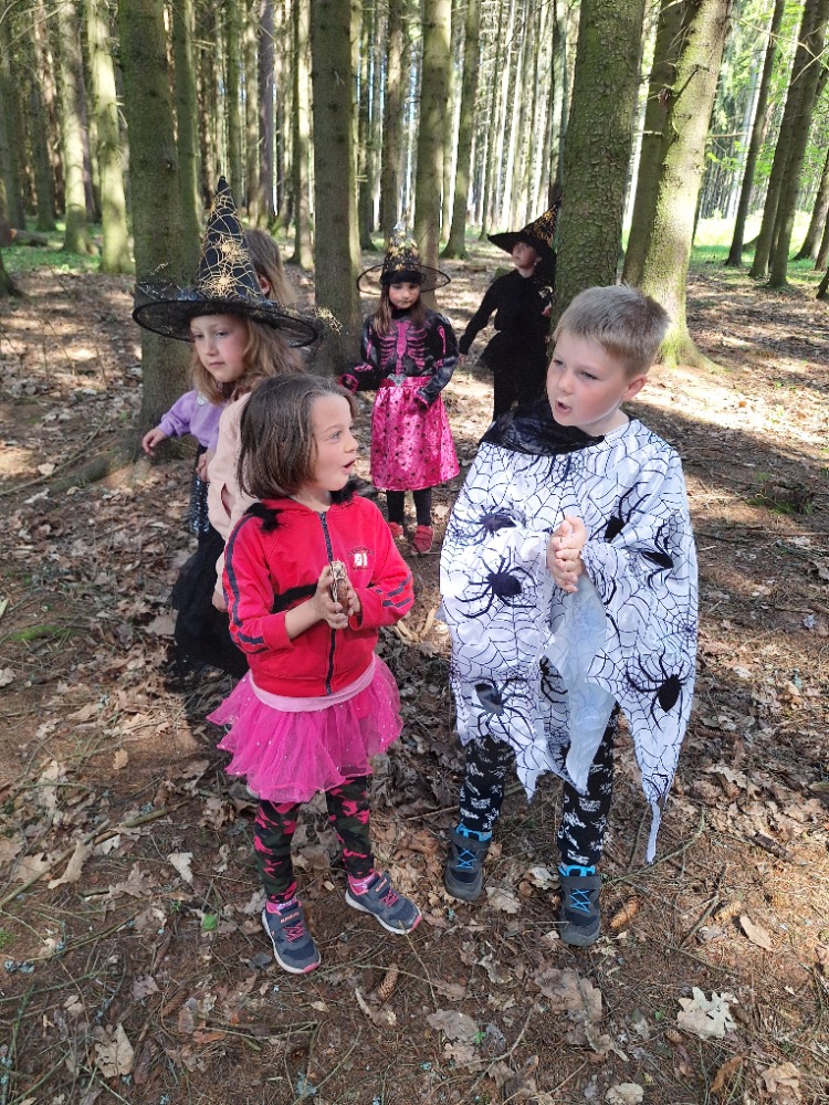 V první polovině si malí čarodějové vyzkoušeli samostatnou práci v knize, která obsahovala různé úkoly. Prvňáci využili své dovednosti ve čtení, psaní a počítání. A to bez pomoci dospělých čarodějnic. Po vzájemných poradách a splnění úkolů se všichni odebrali do lesa. Tam našli dřevěné placičky s písmeny, museli na ně vymyslet slovo a to slovo vyhláskovat. Chodili ve dvojicích a pomáhali si. Dále čarodějové vstoupili do jeskyně, kde byla cesta ven vyznačena lanem. Každá dvojice, která se vydala na cestu měla zavázané oči a opět ve vzájemně podporovala v členitém terénu mezi stromy. Nechyběla ani chvilka se stavěním domečků v lese. Také se nám moc hodily bonbony, které nám na cestu dala paní Zudová. Den si se všemi užily velké čarodějnice Marta, Lenka a Radka.