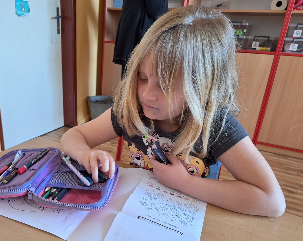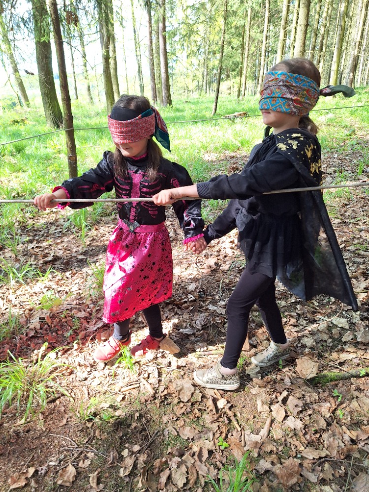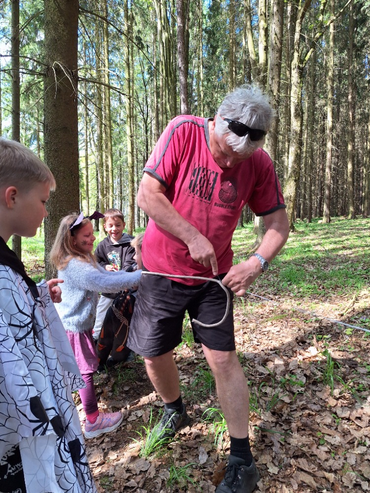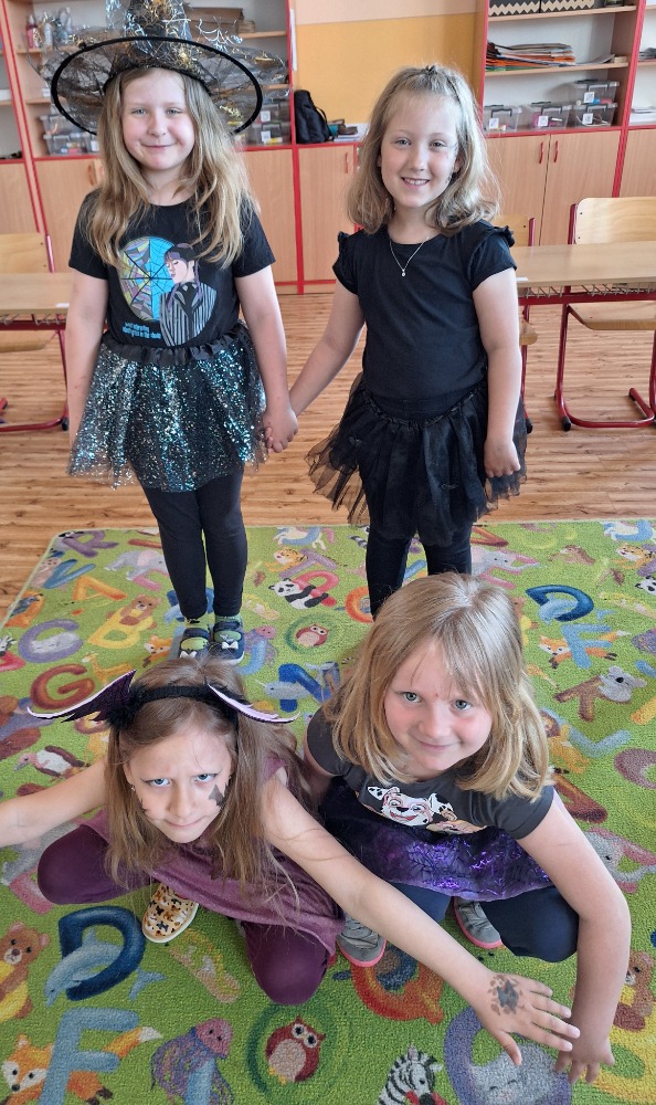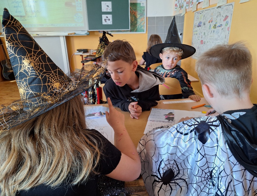 V první polovině si malí čarodějové vyzkoušeli samostatnou práci v knize, která obsahovala různé úkoly. Prvňáci využili své dovednosti ve čtení, psaní a počítání. A to bez pomoci dospělých čarodějnic. Po vzájemných poradách a splnění úkolů se všichni odebrali do lesa. Tam našli dřevěné placičky s písmeny, museli na ně vymyslet slovo a to slovo vyhláskovat. Chodili ve dvojicích a pomáhali si. Dále čarodějové vstoupili do jeskyně, kde byla cesta ven vyznačena lanem. Každá dvojice, která se vydala na cestu měla zavázané oči a opět ve vzájemně podporovala v členitém terénu mezi stromy. Nechyběla ani chvilka se stavěním domečků v lese. Také se nám moc hodily bonbony, které nám na cestu dala paní Zudová. Den si se všemi užily velké čarodějnice Marta, Lenka a Radka.