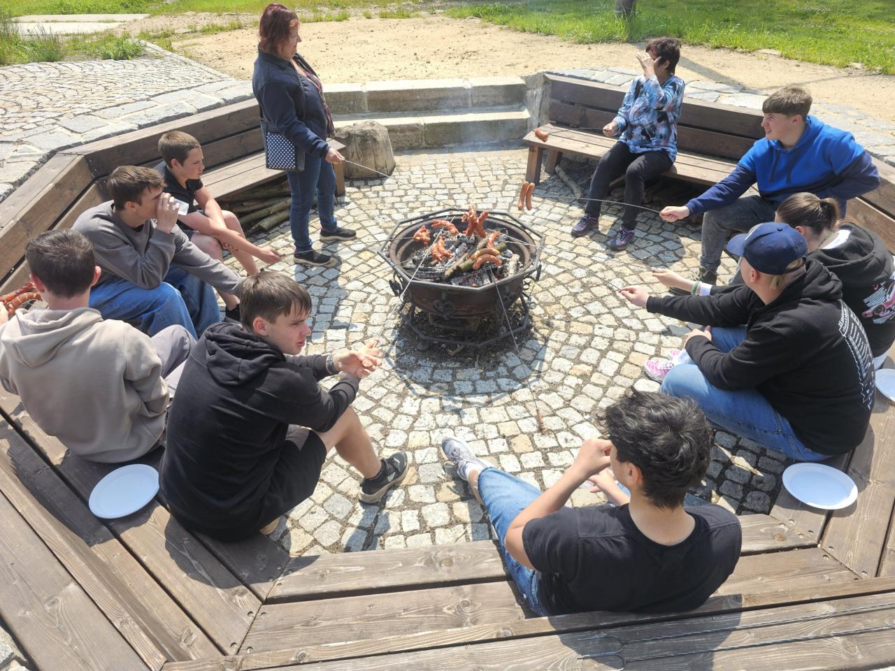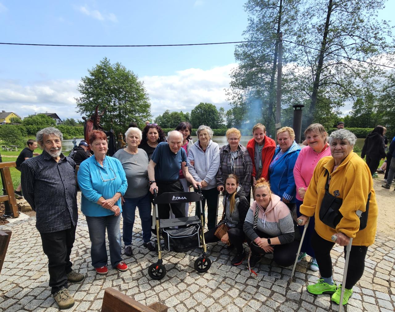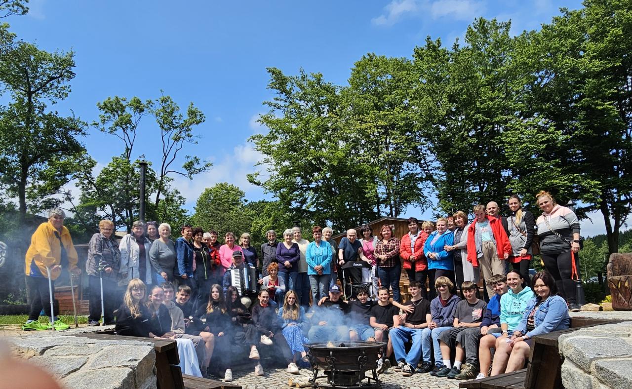 Naše čtvrté setkání se seniory začalo s nejistým pohledem na oblohu – ráno to vypadalo, že nás čeká deštivé odpoledne. Nakonec ale sluníčko vykouklo a dopřálo nám příjemný čas venku u ohně, špekáčků a společného povídání.