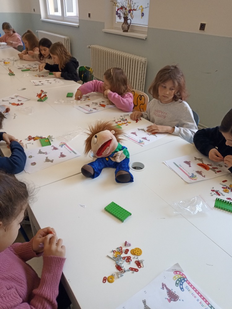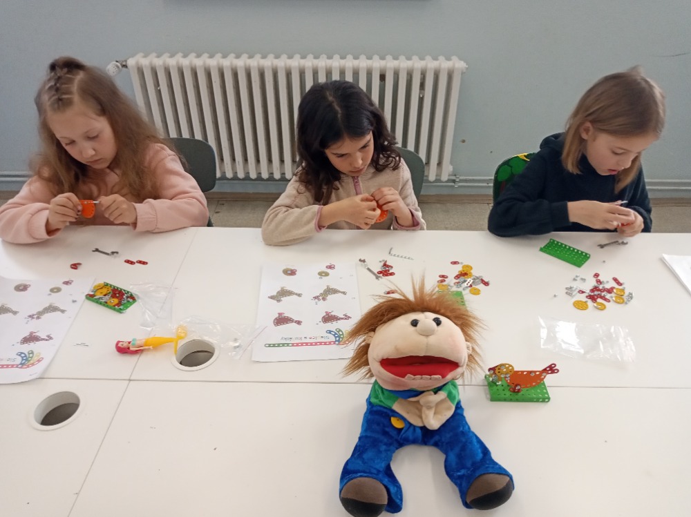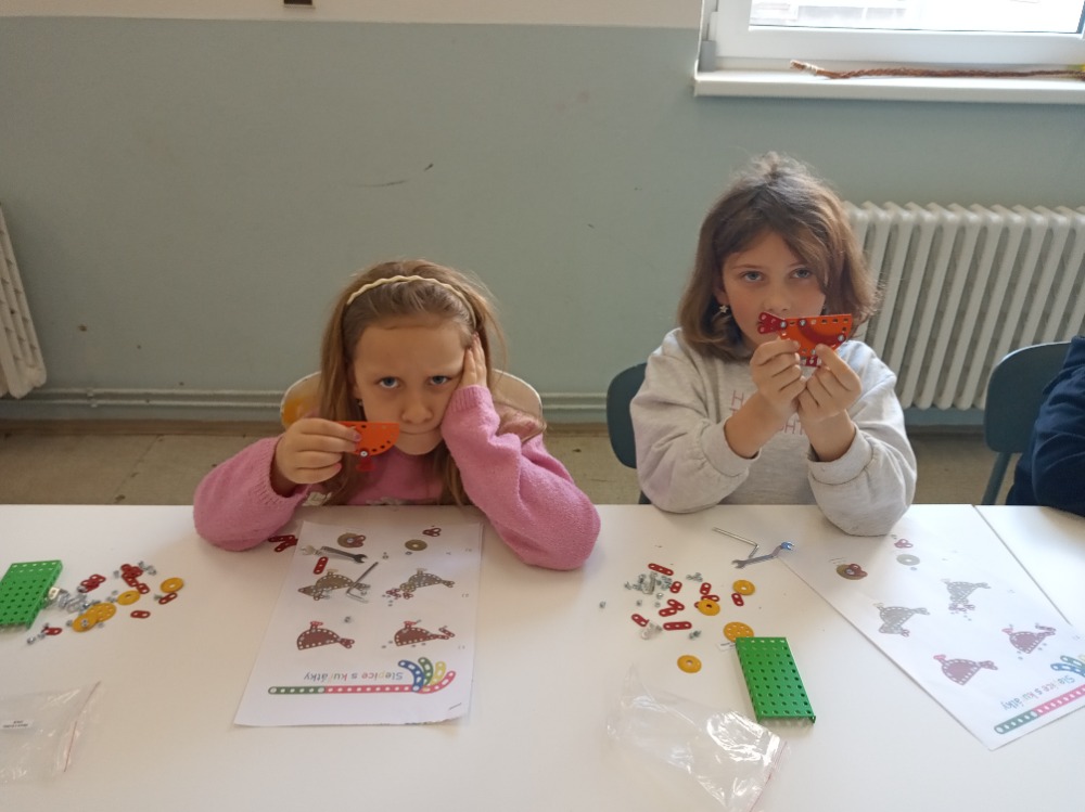 Cílem byl drobný výrobek ze stavebnice Merkur s velikonoční tématikou - slepice s kuřátky. Žáci si procvičili práci s klíčem, šroubovákem, šrouby a maticemi. Novinkou pro ně bylo čtení návodu a montování podle něj. Nakonec si s tím poradili všichni a odměnou jim byl výrobek, který si mohli odnést domů.