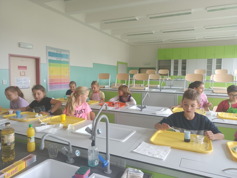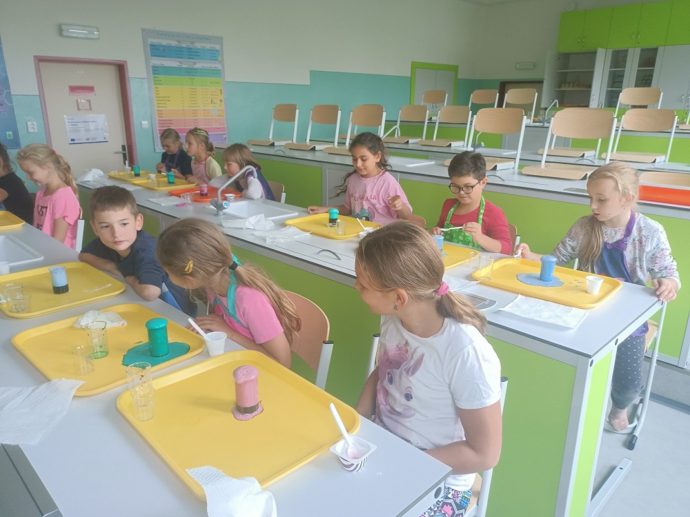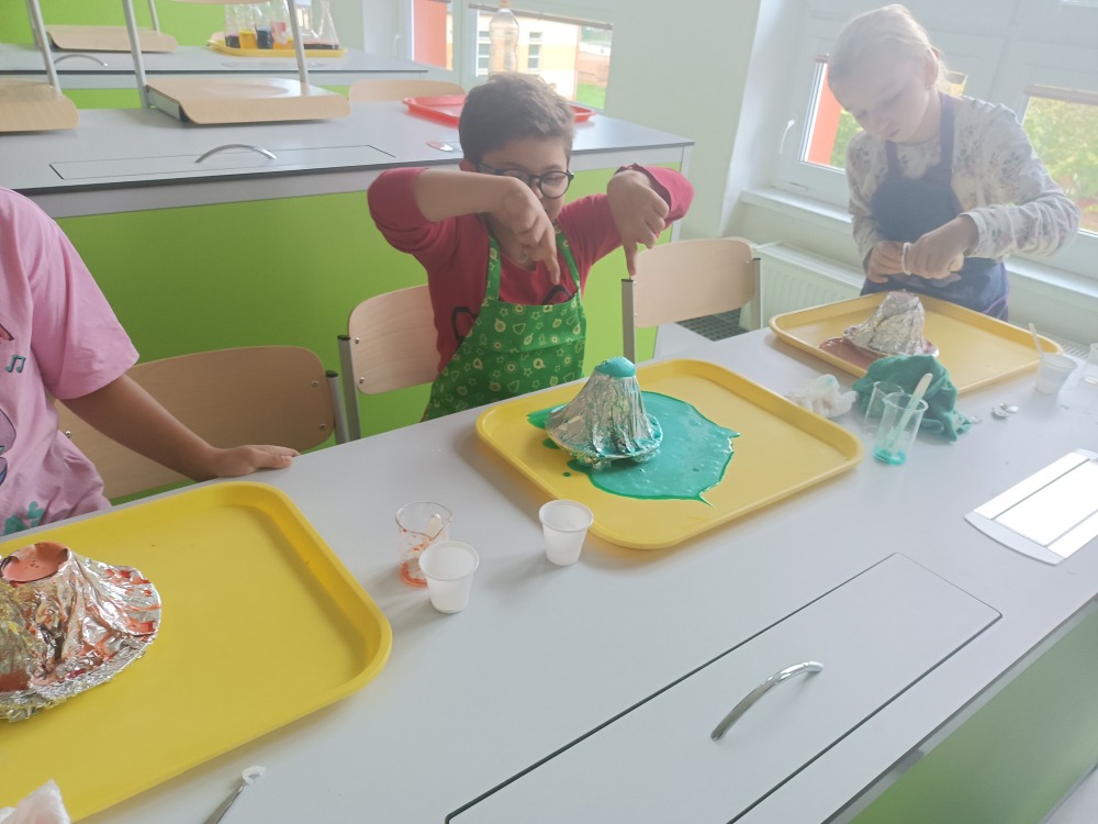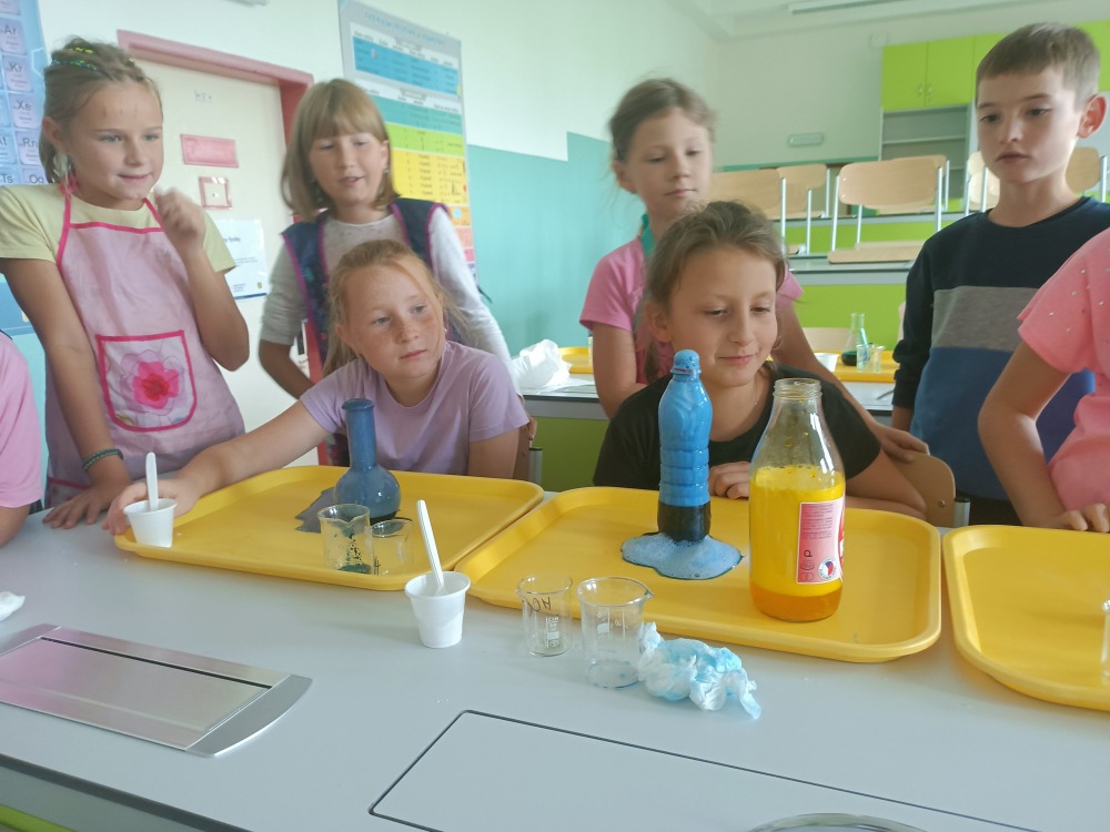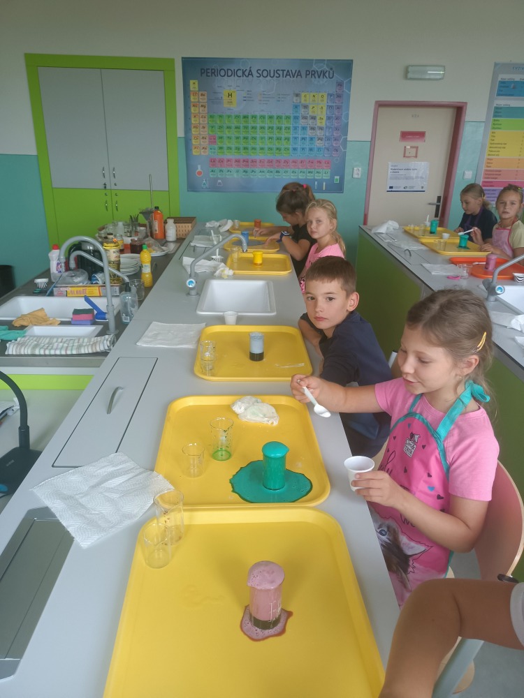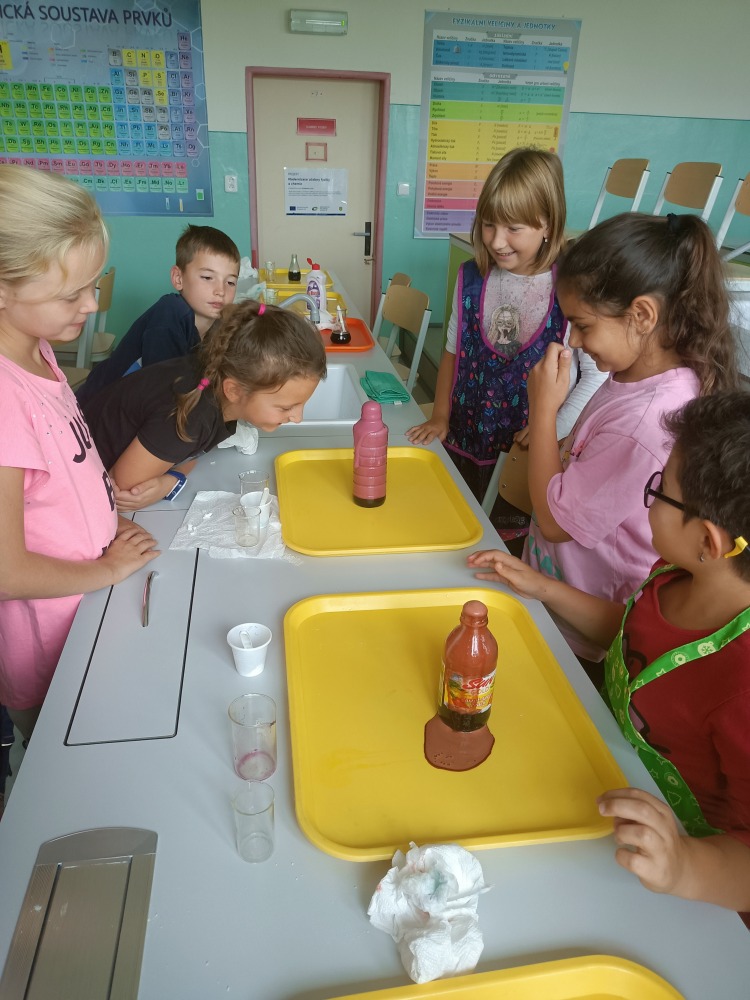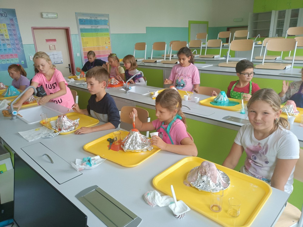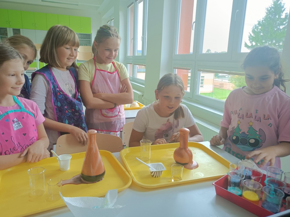 Mohou se ho účastnit děti ze 2., 3. a 4. třídy. V průběhu roku děti na schůzkách budou provádět přírodovědné, fyzikální a chemické pokusy. Na první schůzce se malí badatelé seznámili s tím, co jsou to zásady a kyseliny a zkoumali, co se děje při jejich vzájemném smíchání. Míchali barevné sloučeniny a každý badatel si vyrobil svou vlastní sopku. Zkoumalo se jim dobře, laboratorní práce totiž prováděli v úplně nové učebně fyziky a chemie. Na příští schůzce si kromě jiného zkusí vyrobit krvavý déšť a budou odpalovat rakety. Snad budou stejně úspěšní jako na první schůzce.