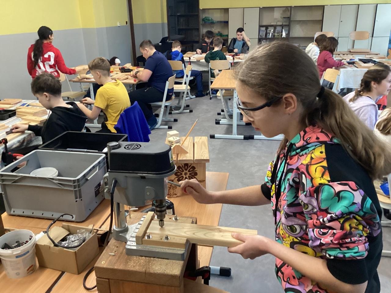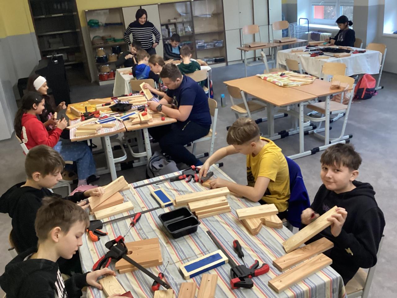 S panem Kaněrou se děti nesetkaly poprvé, už ve druhé třídě pod jeho vedením vyráběly dřevěný truhlík. I tentokrát bylo vidět, jak moc je práce se dřevem baví.