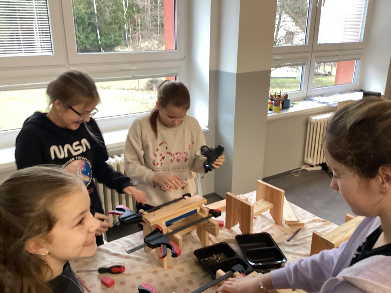 Pan Kaněra děti trpělivě provedl celým postupem práce a vysvětlil jim jednotlivé kroky výroby. Páťáci si tak mohli vyzkoušet měření, broušení, sestavování i finální úpravy. Každý žák si svou stoličku vyrobil samostatně, samozřejmě s odbornou podporou pana truhláře.