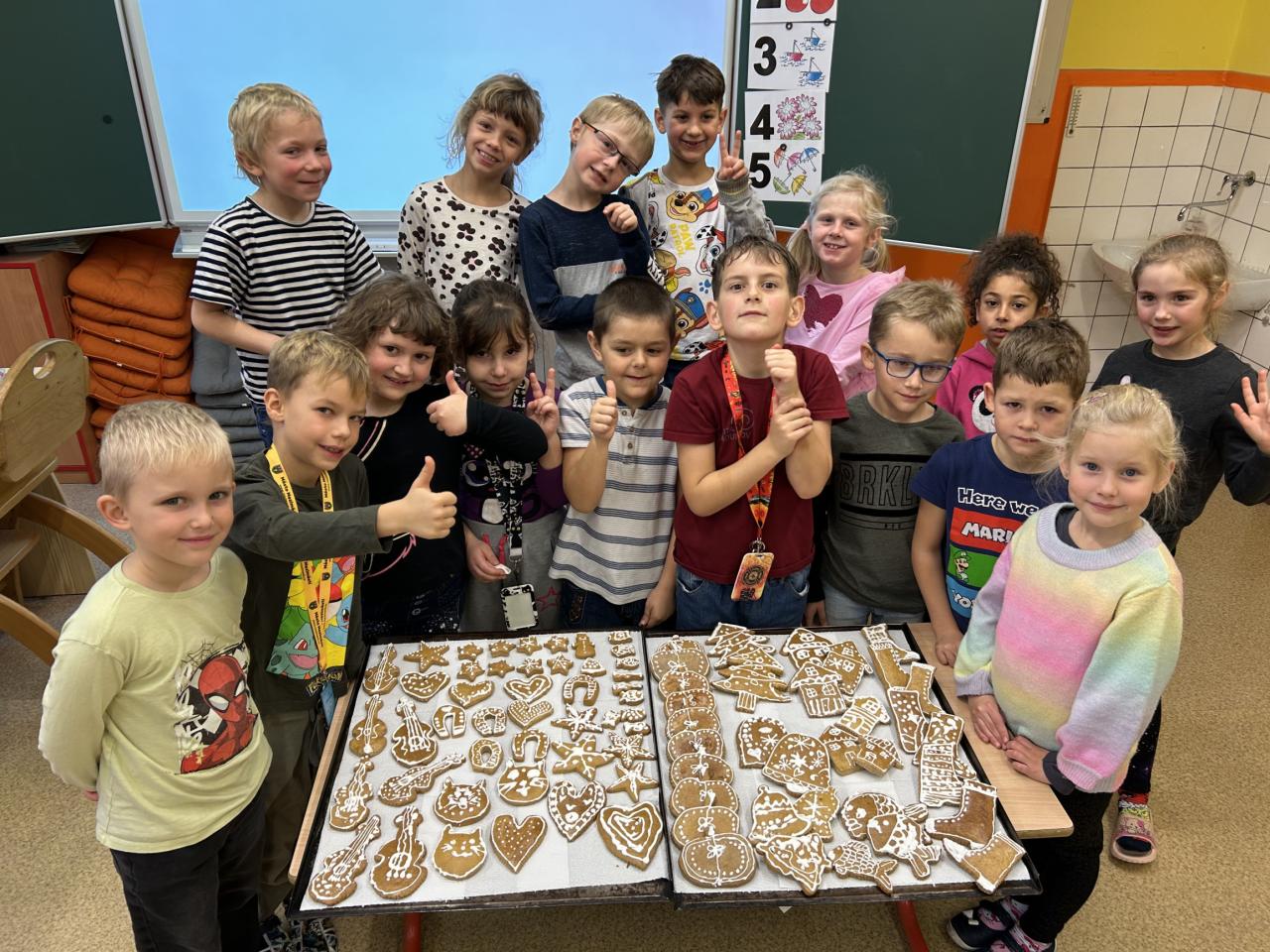 Děti z první třídy si pro nás připravily krásně nazdobené perníčky. Byly voňavé a moc dobré.